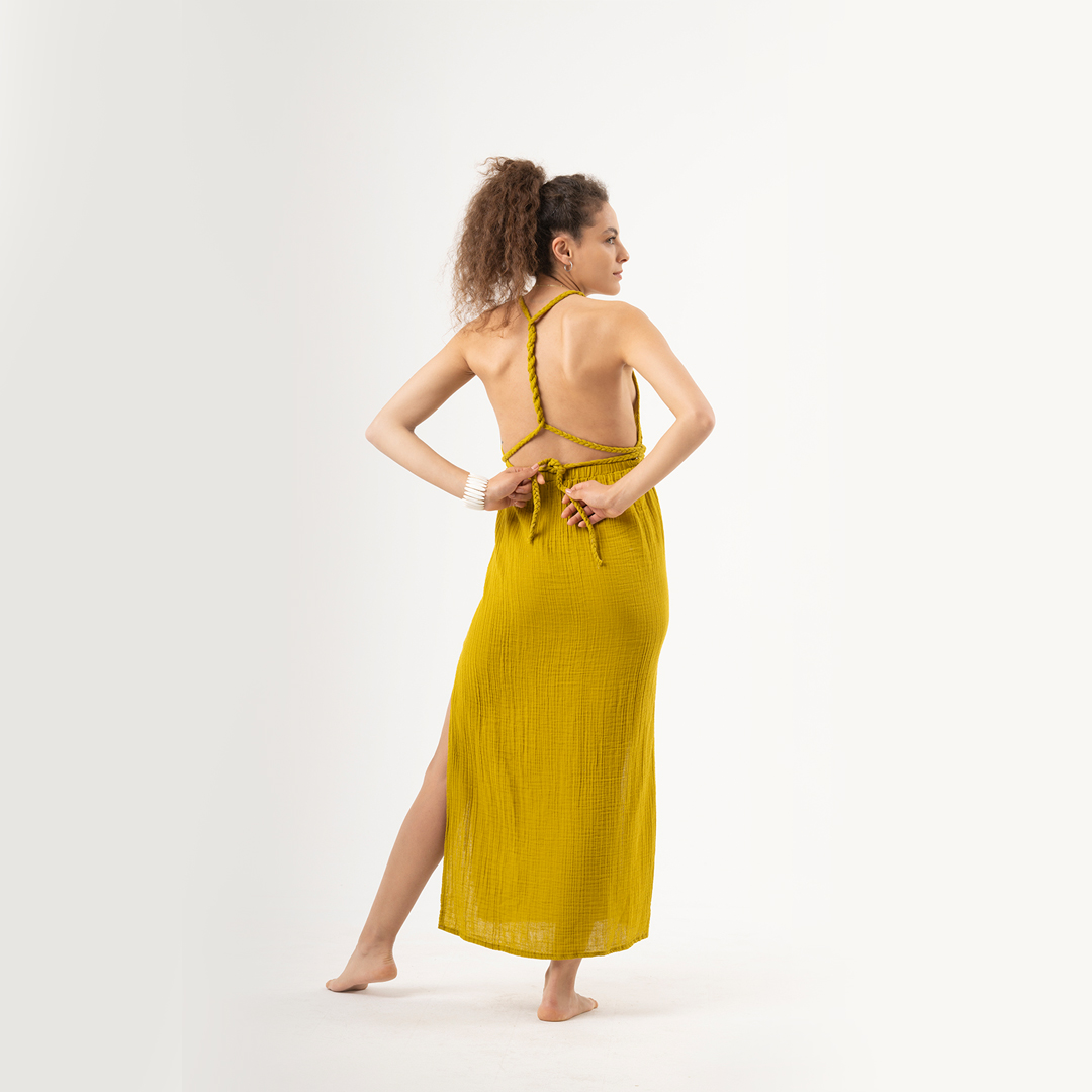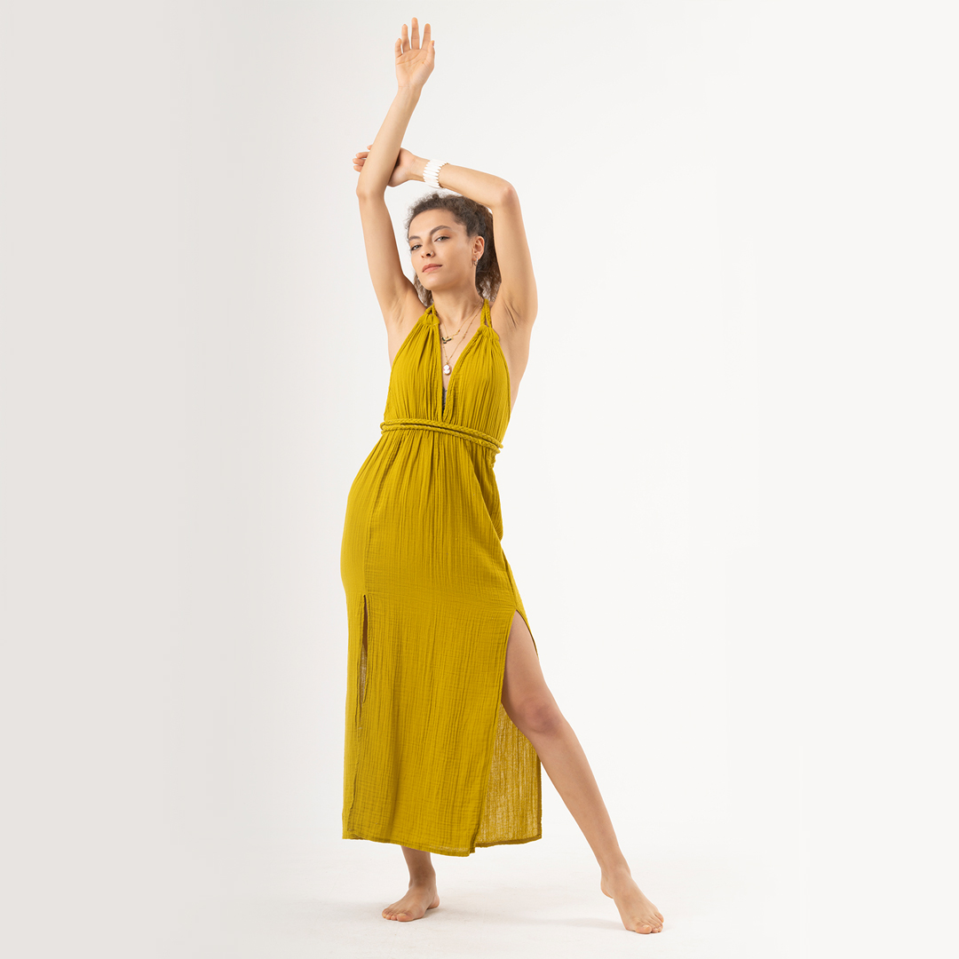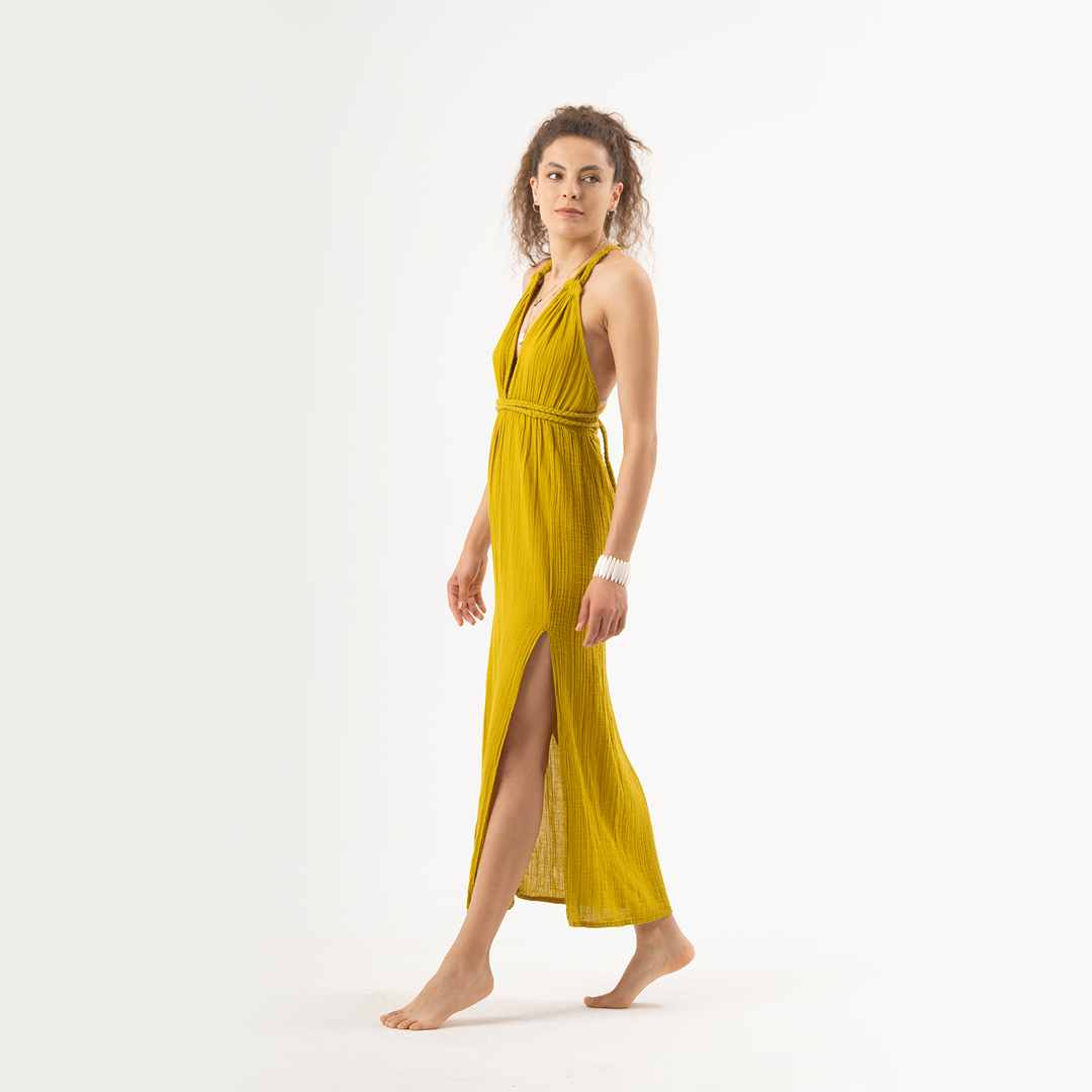 Afrodit Saç Örgülü Müslin Elbise Standart Beden