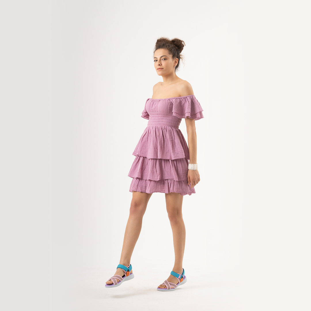 - Lastikli omuz detayı (off-shoulder kullanım)
